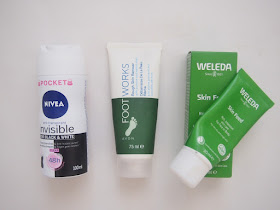 Anti-transpirant Invisible Black & White Pocket balení - Nivea - jsem tu měla už hrozně dlouho, používala jsem ho zřídka, jen když jsem někam jela, brala jsem ho s sebou na cesty. Tahle B&W varianta mi i voní, ale lehce mě štípe v podpaží a tak nějak jsem se s ní nesžila, že bych ji potřebovala znovu. Ale zas nemůžu říct, že by sprej nefungoval. To zase jo a méně náročnější dny jsem s ním v pohodě přežila. Přesto nebudu vyhledávat znovu. Hodnocení: 3/5.
